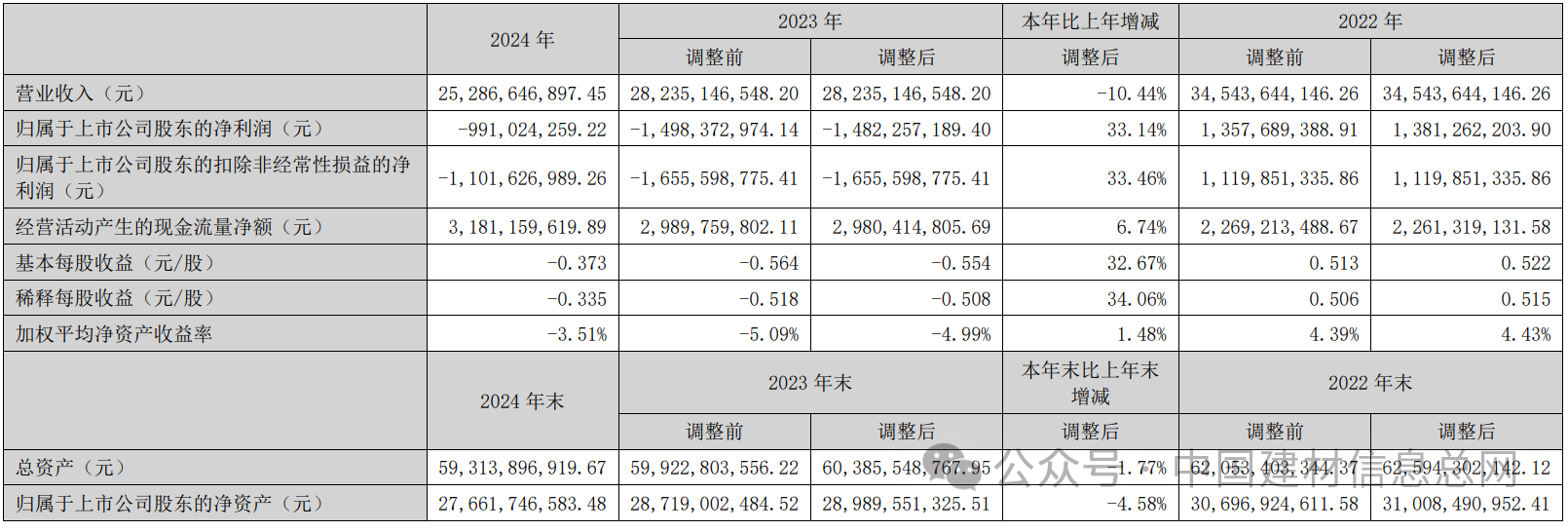 3月27日,冀东水泥(000401)发布公告称,2024年,公司实现营业收入252.87亿元,同比降低10.44%,营业利润-7.66亿元,同比减亏 60.36%,归属于上市公司股东的净利润-9.91亿元,同比减亏33.14%。